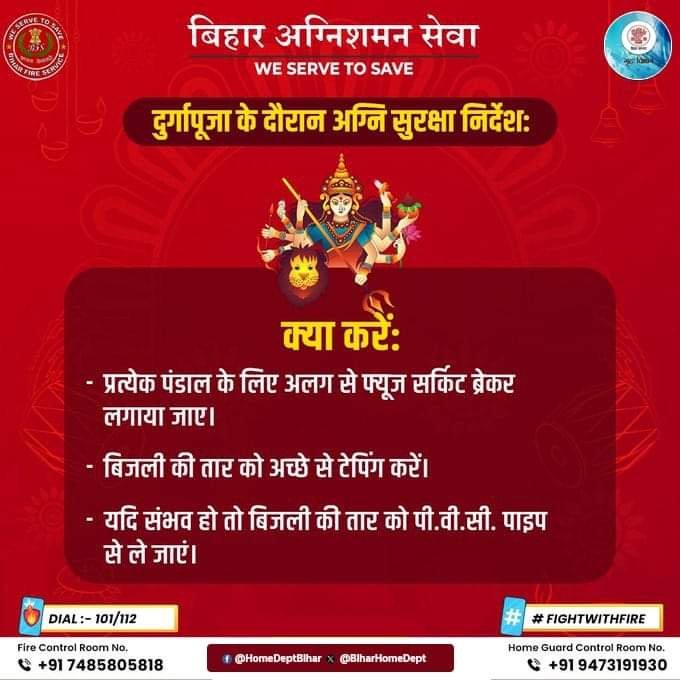 *समाहरणालय मधुबनी* *दुर्गा पूजा के अवसर पर अग्नि सुरक्षा को लेकर जिला प्रशासन ने एडवाइजरी जारी करते हुए कहा है कि प्रत्येक वर्ष की...