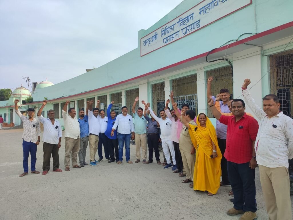 11 सूत्री मांगों के समर्थन में काला बिल्ला लगा काम पर रहे सीएम साइंस कॉलेज के कर्मचारी