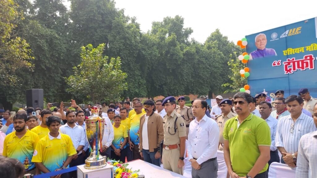 आज दिनांक 4 नवंबर 2024 को श्री रवींद्रण शंकरण ,महानिदेशक -सह – मुख्य कार्यकारी अधिकारी ,बिहार राज्य खेल प्राधिकरण, श्री शशांक शुभंकर ,जिलाधिकारी, नालन्दा एवं श्री भारत सोनी, पुलिस अधीक्षक, नालंदा द्वारा एशियन महिला हॉकी चैंपियंस ट्रॉफी के अवसर पर नालंदा खंडहर अवस्थित ट्रॉफी गौरव यात्रा कार्यक्रम का शुभारंभ द्वीप प्रज्वलित कर किया गया ।