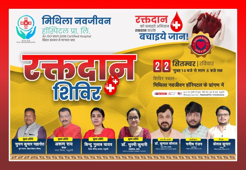 मिथिला नव जीवन अस्पताल मधुबनी में 22 सितंबर को हो रहा रक्तदान शिविर का आयोजन , तैयारी जोरों पर।