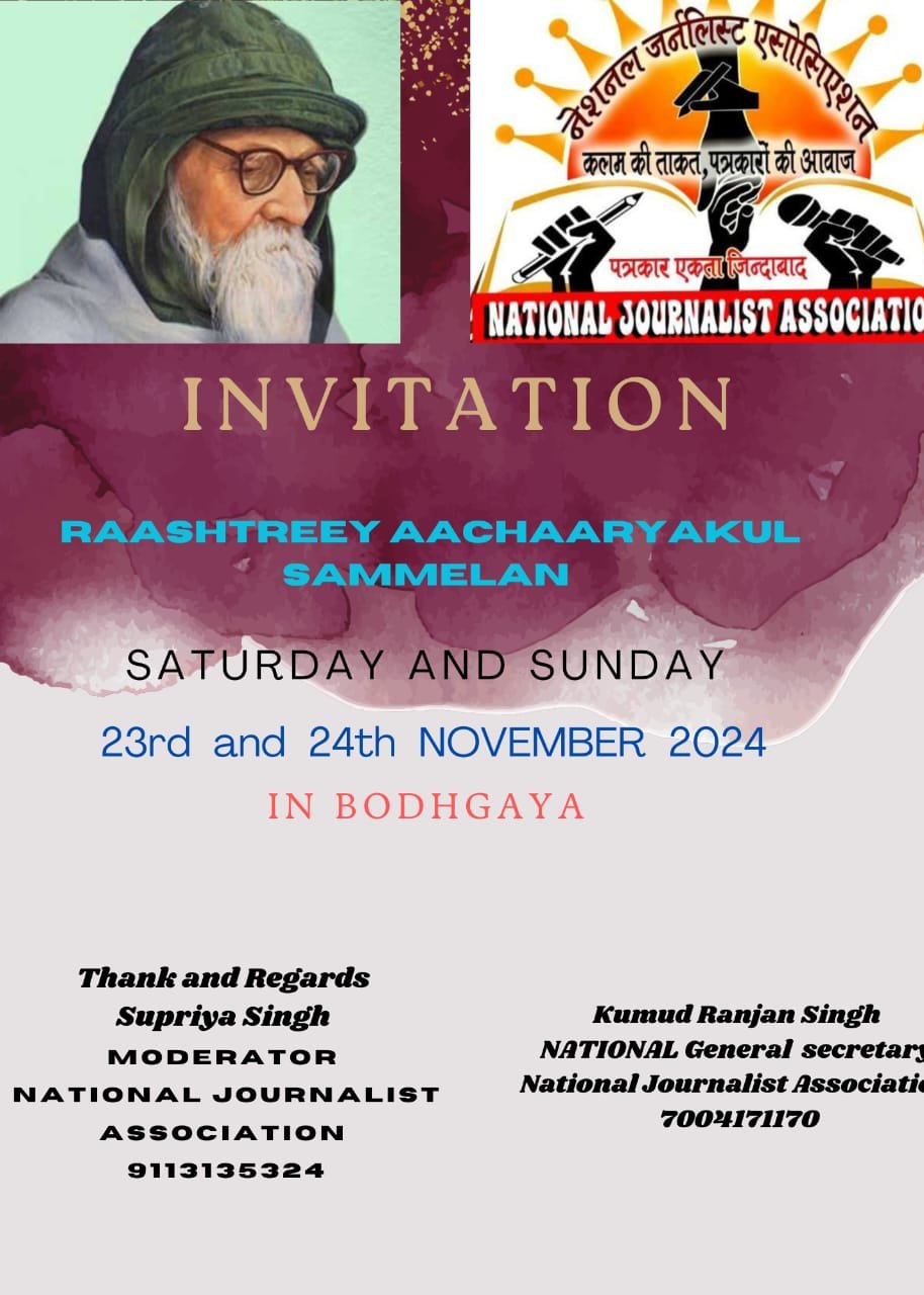 आचार्य कुल का राष्ट्रीय सम्मेलन 23 एवं 24 नवंबर बोध गया में प्रस्तावित
