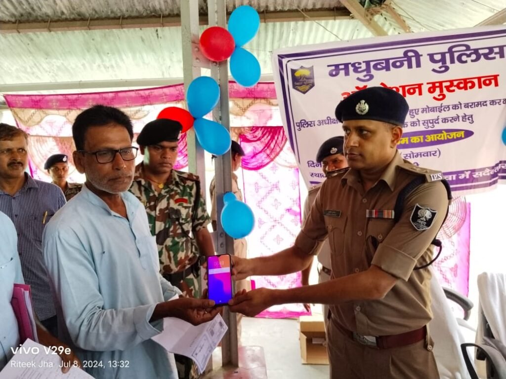 नगर थाना परिसर में आज ऑपरेशन मुस्कान के तहत पुलिस के द्वारा 134 मोबाइल को बरामद कर मोबाइल धारकों की पहचानकर उन्हें किया गया सुपुर्द