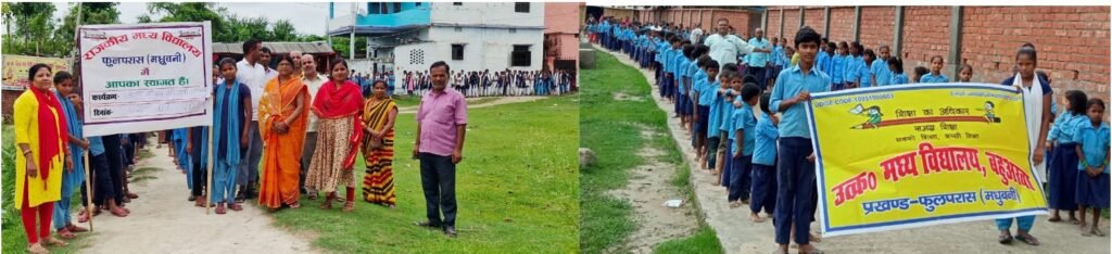 गिरते भूगर्भ जलस्तर के दुष्परिणामों की चर्चा करते स्कूली बच्चों एवं शिक्षकों ने निकाली प्रभातफेरी