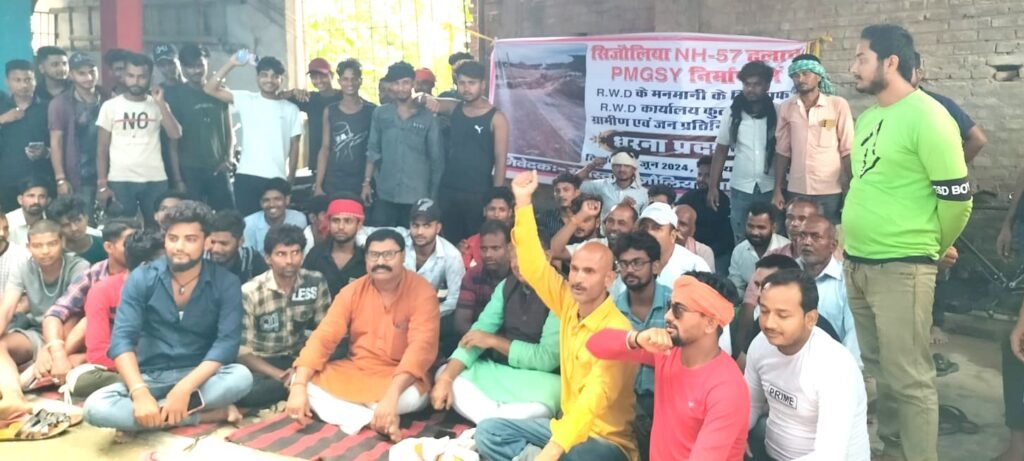 सिजौलिया संपर्क पथ में एनएच 27 के ढ़लान की तीव्रता को कम करने की मांग को लेकर ग्रामीणों का प्रदर्शन