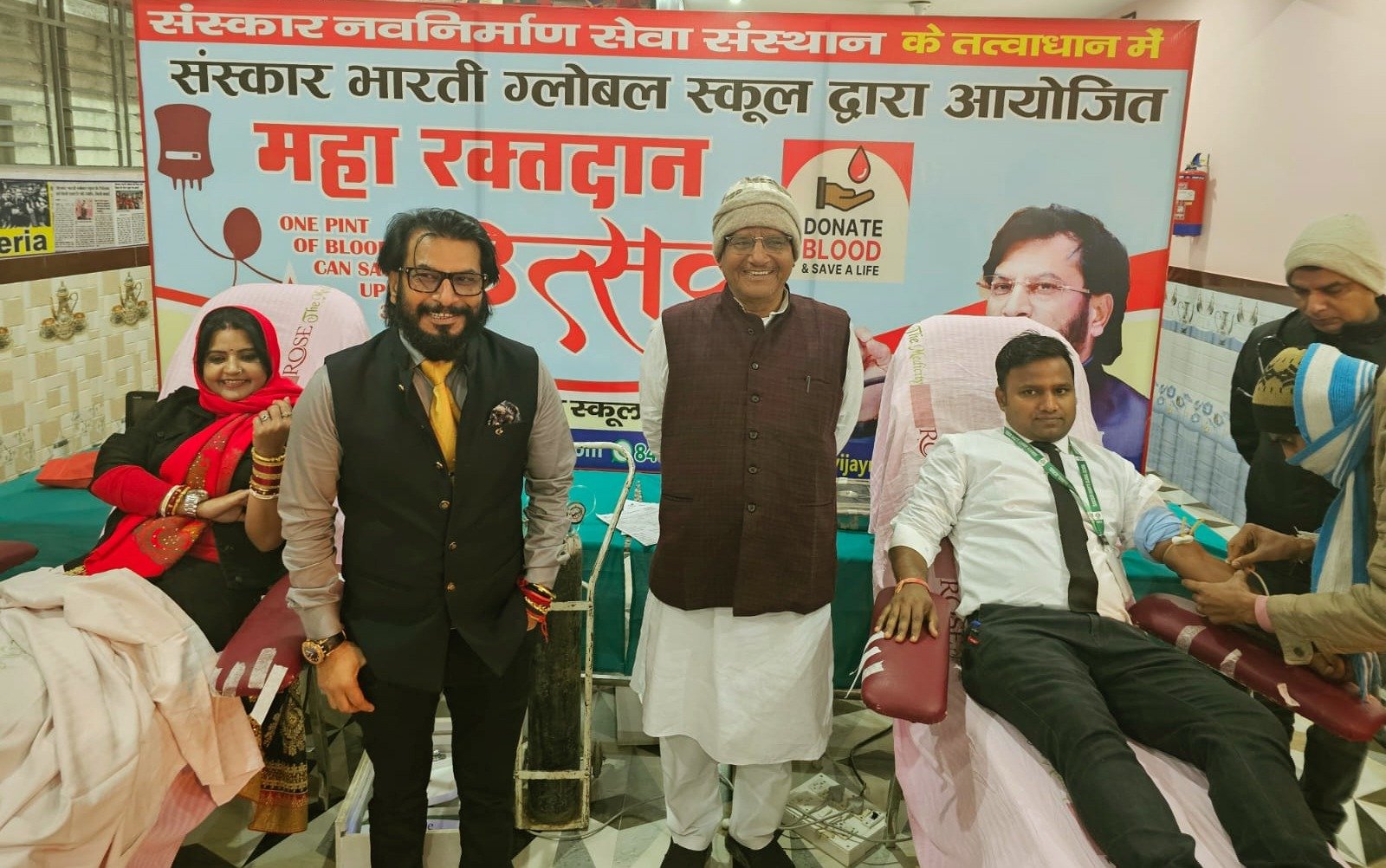 संस्कार नवनिर्माण सेवा संस्थान के तत्वावधान में संस्कार भारती ग्लोबल स्कूल,फुलपरास के संस्थापक निदेशक डॉ0 विजय रंजन के 51वें जन्म दिवस के मौकेे पर विद्यालय प्रांगण में युवा संवाद टीम द्वारा मंगलवार को स्वैच्छिक रक्तदान शिविर का आयोजन किया गया।