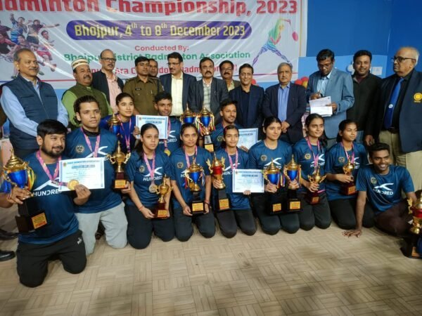 आरा। 04 से 08 दिसंबर तक आरा क्लब में आयोजित लिनिंग बिहार राज्य सीनियर बैडमिंटन चैम्पियनशीप का आज आखिरी दिन सभी वर्गों के फाइनल मैच खेले गये। पूर्णिया की सलोनी कुमारी ने दोहरा खिताब अपने नाम किया। जबकि पूर्णिया के ही समीर राज ने पटना के मोहम्मद तबरेज को हराकर पुरूष एकल का खिताब जीता।फाइनल मैच के उपरांत पारितोषिक वितरण कार्यकम मुख्य अतिथि भोजपुर एसपी प्रमोद कुमार यादव, भारतीय कंटेनर निगम लिमिटेड के वितीय प्रबंधक मनोज दूबे द्वारा किया गया। विशिष्ट अतिथि सदर अनुमंडलअधिकारी लाल ज्योति नाथ सहदेव, महासचिव बिहार बैंडमिंटन संघ के० एन० जायसवाल, भोजपुर जिला बैंडमिटन संघ के अध्यक्ष डॉ० कन्हैया सिंह द्वारा विजेता खिलाड़ियों को पुरस्कृत किया गया। मंच का संचालन डॉ० प्रतीक द्वारा एवं धन्यवाद ज्ञापन भोजपुर जिला बैडमिंटन संघ के सचिव डॉ० बी० के० शुक्ला द्वारा किया गया। इस अवसर पर डॉक्टर पी सिंह डॉ एसके रूंगटा सहित प्रतियोगिता के आखिरी दिन बड़ी संख्या में खेल प्रेमी एवं भोजपुर जिला बैडमिंटन संघ के सदस्य ऋषिराज, विशाल रंजन, पप्पू सिंह, आशुतोष, राजवीर सिंह, विनय सिंह आदि उपस्थित थे।