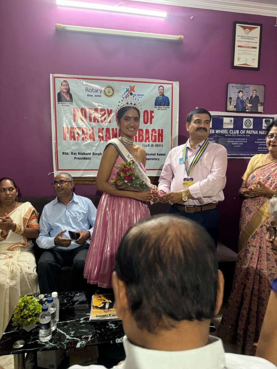 बिहार से दिल्ली में आयोजित *वर्ल्ड मिस यूनीवर्स* प्रतियोगिता प्रतिनिधित्व करने वाली काजल चौधरी का अभिनन्दन समारोह रोटरी क्लब, कंकडबाग द्वारा डा, सुजीत कुमार के क्लिनिक पर आयोजित किया गया।