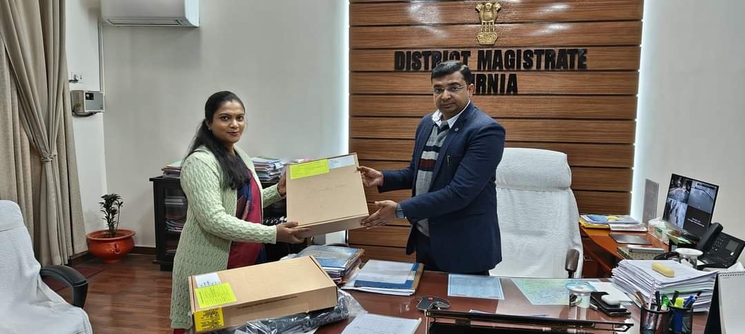 कुन्दन कुमार (भा०प्र०से० ) जिला पदाधिकारी पूर्णिया के द्वारा अपने कार्यालय कक्ष में राजस्व अधिकारी बैसा , अनुराधा कुमारी, सोनू कुमार तथा निशा कुमारी सभी राजस्व कर्मचारी को लैपटॉप दिया गया । कुल एक सौ पैंतालीस राजस्व कर्मचारी, राजस्व अधिकारी तथा अंचल अधिकारियों को लैपटॉप हस्तगत कराया गया।